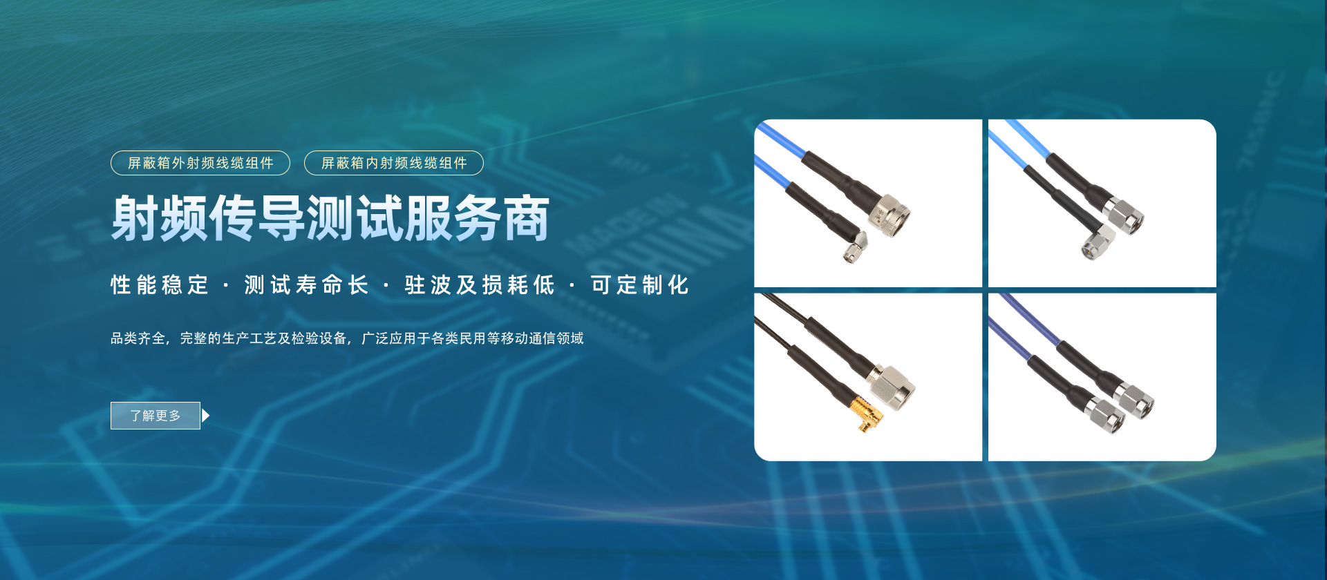 射頻線纜組件由射頻連接器和射頻線纜兩部分組成。射頻線纜組件主要用于連接各類信號收發設備/模塊或天線/發射機,確保其間信號精確、低損、高質的傳輸。