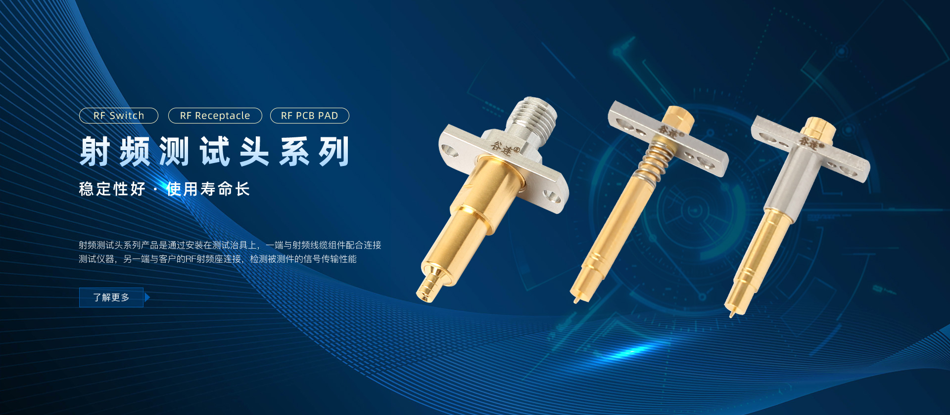 谷連精密創建于2017年,是全國領先的射頻傳導測試的服務商。公司產品主要應用于手機,平板, 路由器,無線模塊,新能源汽車以及航空航天等的測試領域。主要產品包括:射頻測試頭,射頻線纜組件,射頻轉接器以及其他射頻測試其他輔助用品。谷連精密具備自主研發能力,目前已經 獲得多項研發專利和ISO 9001質量體系認證,并可以接受客戶產品定制化服務。谷連精密為更好地服務好全國以及全球客戶,設有谷連(上海),谷連(深圳),HONLINK(香港)等分支機構。
